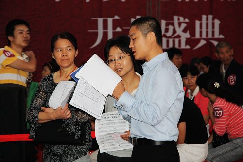 “快點,就這套!”在緊張有序的選房環節中,隨時可以聽見客戶急切的呼聲,他們一邊在銷控表上挑選心儀的房源,一邊要求著物業顧問趕緊替他們辦理認購手續,生怕被人搶了先。據悉,當場共有110位客戶如意的選擇到了心儀房源。