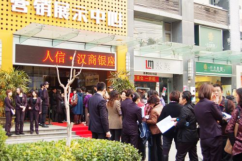 3月13日人信·漢商銀座新推出的LOFT產品正式啟動認籌。認籌當天,成功辦理認籌手續的置業者已達到兩百余組。同時在現場抽獎活動中,幸運客戶抽得最高2萬元購房代金券大獎,將現場氣氛推至高潮。
