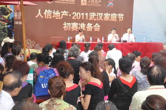 8月27日, “人信地產·2011武漢家庭節”活動準備會在人信·太子灣營銷中心前廣場隆重舉行。此次盛會由人信地產、武漢體育中心共同主辦,近百組家庭節參賽選手出席。
