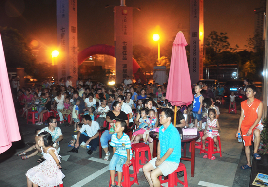 晚上7點不到,人信·太子灣營銷中心門前早已經是人聲鼎沸,7點30分,《功夫熊貓2》正式放映,熊貓阿寶帶著蓋世五俠,再次以它憨態十足的搞笑功力而來,讓在場觀看的朋友笑得合不攏嘴,小朋友們更是非常歡喜。這一次阿寶不僅領悟了一門新武功,還似乎要開始談戀愛了,精彩的劇情讓現場的朋友們欣喜萬分。雖然天氣有點熱,但是到訪的朋友們熱情不減,大家更是對主辦方精心準備扇子和礦泉水等清涼物品贊不絕口。到訪的朋友表示,不花錢,不到電影院便可以欣賞大片,更有主辦方的貼心服務,讓他們度過了一個愉快的周末夜晚,甚是歡喜。
