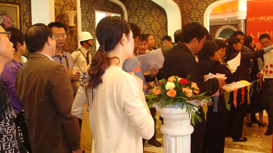 不到早上八點鐘,就有眾多客戶陸續簽到進入營銷中心,營銷中心內外已是人聲鼎沸,活動現場一片紅色熱烈的氛圍,人信地產斥資數百萬全面裝飾一新的營銷大廳熠熠生輝,彰顯出王者的尊貴與大氣,F場來賓不僅能品嘗到精美的甜品及飲品,更有熱情的舞蹈、獨唱、提琴及水鼓表演,讓來賓得到味蕾與視覺、聽覺的多重震撼,當然,最另人心動的還是選到一套稱心如意的好房子。