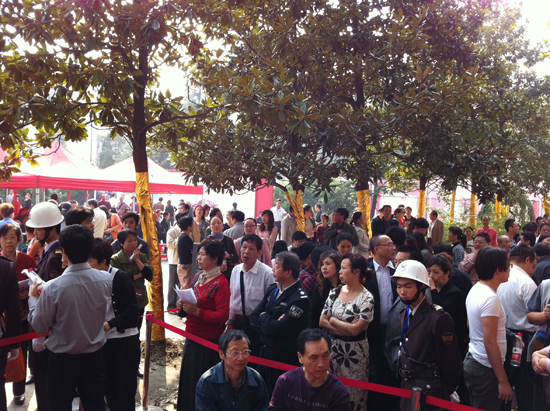 銷控板圍滿了參與選房的居民