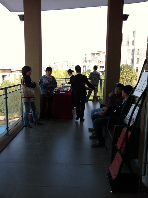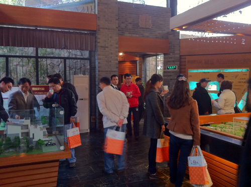企業代表們饒有興趣的聽銷售員講解新品戶型