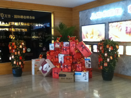 此次活動主要針對人信老業主和項目周邊的客戶,部分人信老業主在活動第一天一大早就前來,恰逢小雨雪天氣,天氣寒冷,漢陽人信匯營銷中心暖意融融,,掛滿紅包的金桔樹、年貨禮品、龍年小公仔堆成一座小山、歡快的春節主題音樂、面帶微笑的銷售人員,讓老業主一進門就感受到人信地產的濃濃情意和喜慶的節日氛圍,聽完銷售人員的介紹,很多業主進行了意向登記,也高高興興地拿到了海鮮自助年夜飯套餐劵、年貨大禮包等豐厚的獎品,進門客戶個個笑開顏。
