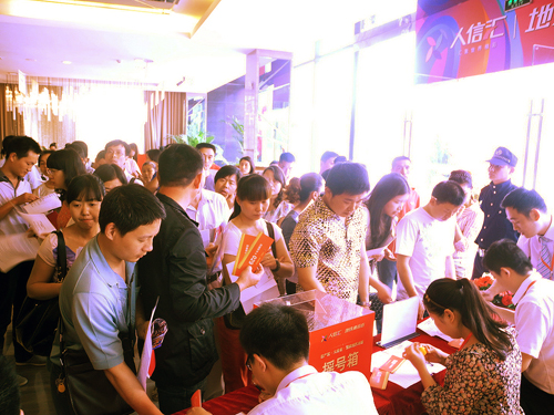 現場簽到處工作人員緊張的為客戶登記