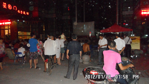 7月28日晚,人信匯送影進社區活動第二站來到了漢陽十里華府社區,為小區居民帶來最近火爆熱映的《四大名捕》。晚上19時許,小區內前來觀看影片的居民已坐滿觀眾席,影片播放的過程中也吸引了不少晚上健身的居民駐足觀看。