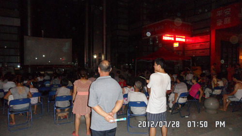 涼風習習的夏夜,觀賞最新暑期精彩大片,既有本社區居民、更吸引了不少周邊小區的居民及行人前來觀看,大家隨著電影的劇情時而緊張、時而激動,共渡這難得的夏日時光。