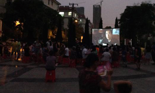 居民們饒有興趣觀看人信地產微電影《63年初戀》